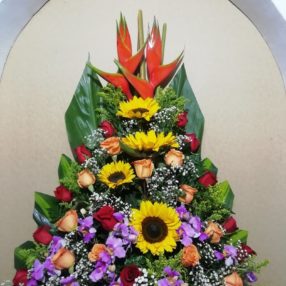$165,000 - $180,000Rango de precios: desde $165,000 hasta $180,000Arreglo Triangular con heliconeas, rosas (30) , girasoles, orquidea hawaiana, sobre una base cuadrada de maderaSeleccionar opciones Este producto tiene múltiples variantes. Las opciones se pueden elegir en la página de producto Vista Rápida -